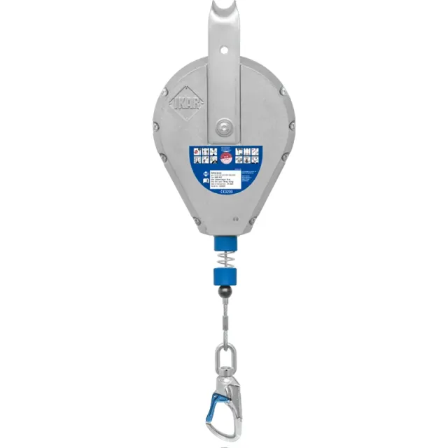 Der Karabinerhaken mit Sturzanzeige am Verbindungsmittel des Geräts zeigt dem Benutzer an, ob das Gerät durch einen Sturz belastet wurde und überprüft werden muss.
