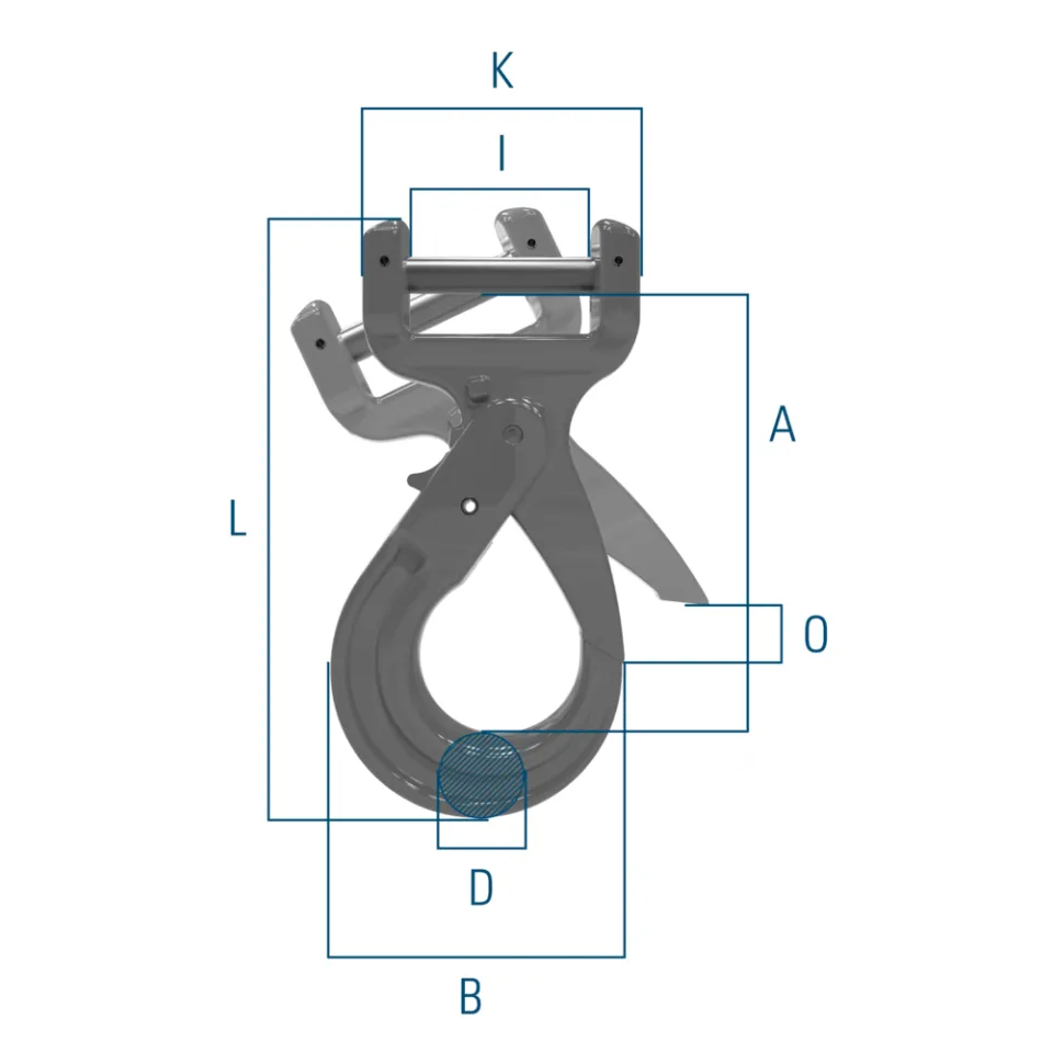 Unter Last selbstschliessender Sicherheitshaken mit Bandaufnahme