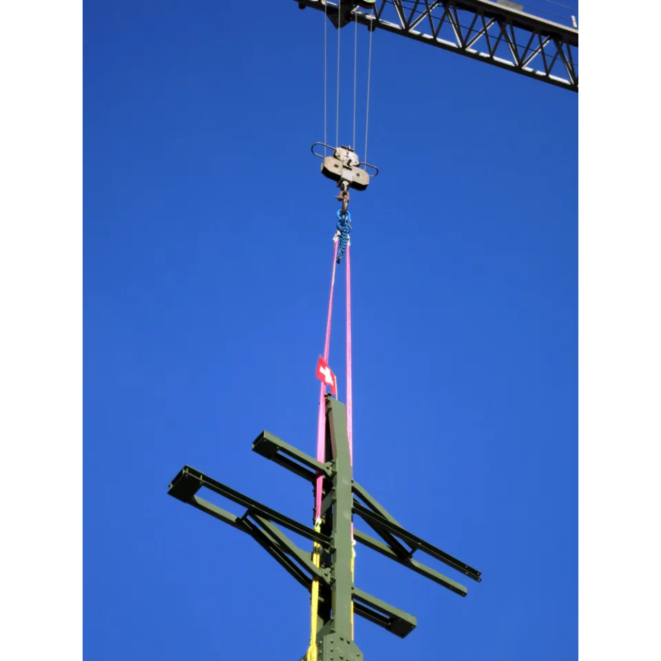 A wide variety of materials have to be lifted on construction sites. Some of these are empfindable goods such as formwork boards. A belt sling is best suited for this. For rough goods, such as a bundle of reinforcing steel, a chain hanger would be suitable. Both jobs can be done with our reversible hangers, because with them you can either sling with the chain or the belt.