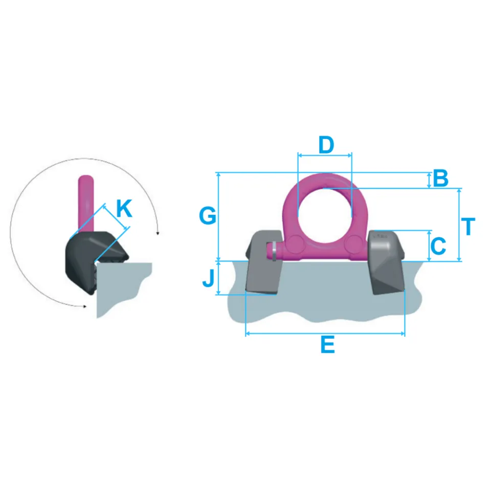 Rundum belastbar, leichte und einfache Schweißmontage, bis zu 270° schwenkbar. Eine geschützte Feder hält den Ringin jeder gewünschten Position.