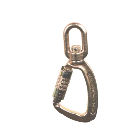 - Dreifach-Aktionskarabiner aus Stahl mit Wirbel und Sturzindikator für die Verbindung zum Gurt