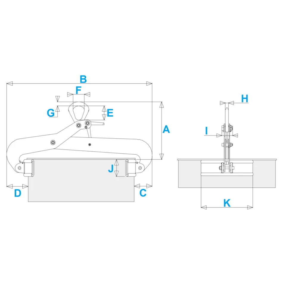 Für vertikales Heben von Stahlfässern mit einem Durchmesser von 400 bis 500 mm (VFR05-5) oder 500 bis 600 mm (VFR05-6). Der Greifer öffnet automatisch, sobald die Last abgesetzt wird. Mit beschichteten Klemmbacken für beste Haftung und zum Schutz der Fässer.