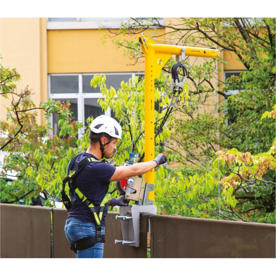 À utiliser dans les petits espaces. Possibilité d'utiliser des rallonges pour augmenter la hauteur du bras Davit. Adaptateur de treuil décalé (A2395-07) pour bloc supplémentaire. Recommandé pour les diamètres de puits compris entre 500 et 700 mm. Portée 381 mm. Pour deux utilisateurs.