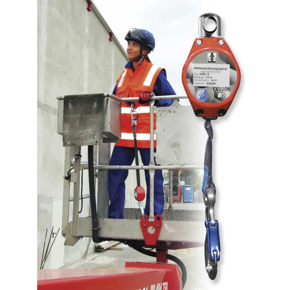 Les antichutes Saverline avec boîtier en aluminium pour la sécurisation d'une personne dans les nacelles élévatrices sont testés et certifiés.