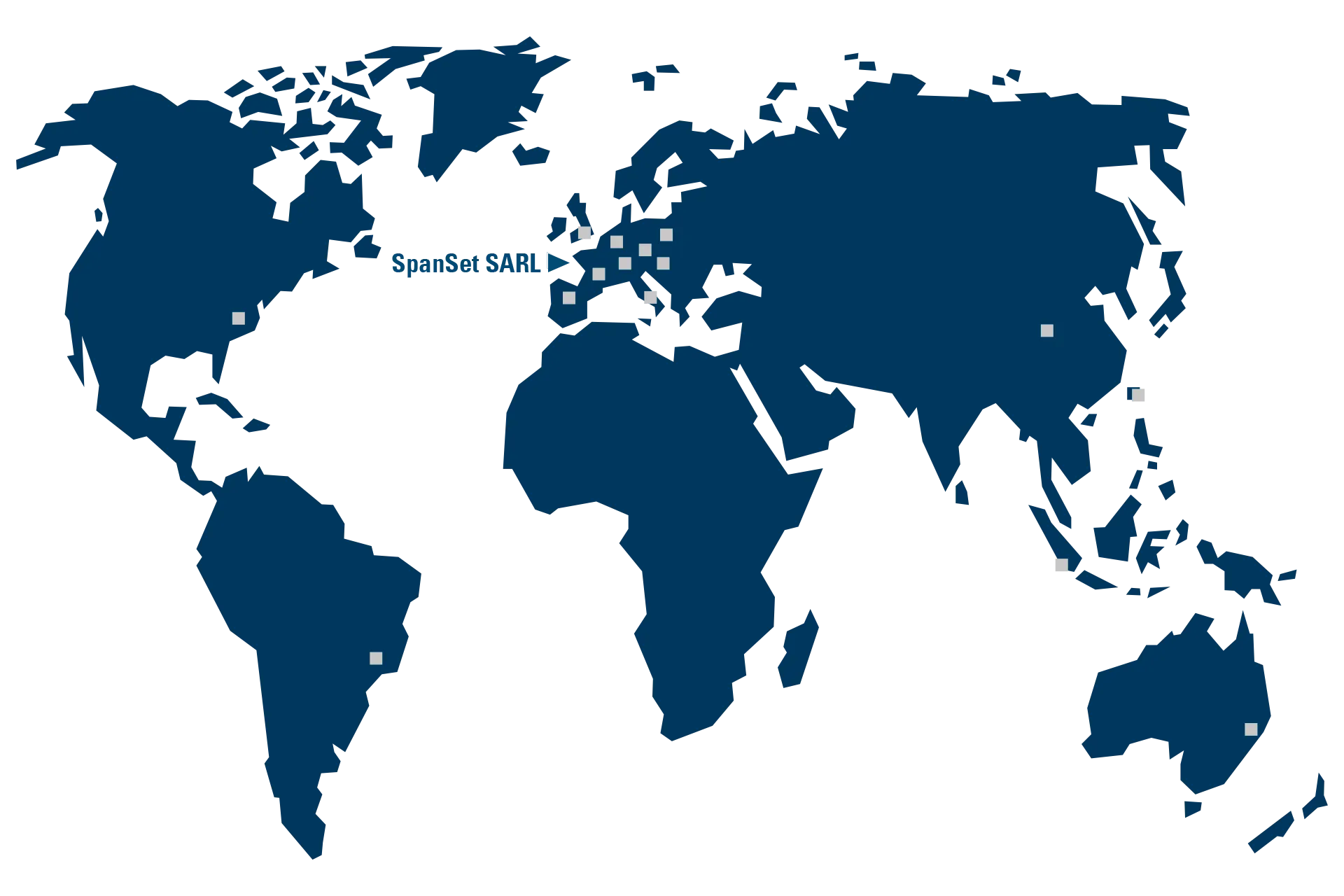 Le groupe SpanSet est présent à l'échelle internationale grâce à ses 15 filiales sur les 5 continents. Le siège de SpanSet Inter est situé en Suisse -Wollerau-, et le groupe possède des usines de solutions spécifiques au Royaume-Uni et en Allemagne.