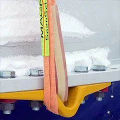 Le levage de 50TN avec une élingue qui dépasse à peine 4 kg. Avec cette évolution, nous sommes confrontés au défi de soulever des charges de plus en plus lourdes, en réduisant le poids et les dimensions de l'élingue de 50 %.